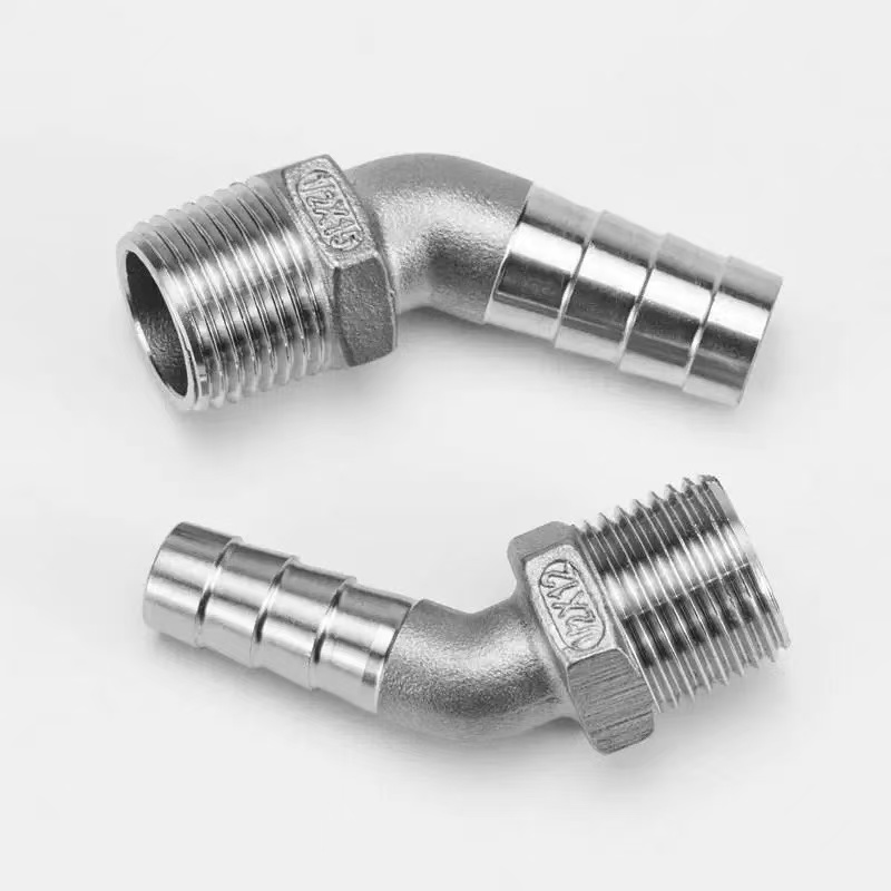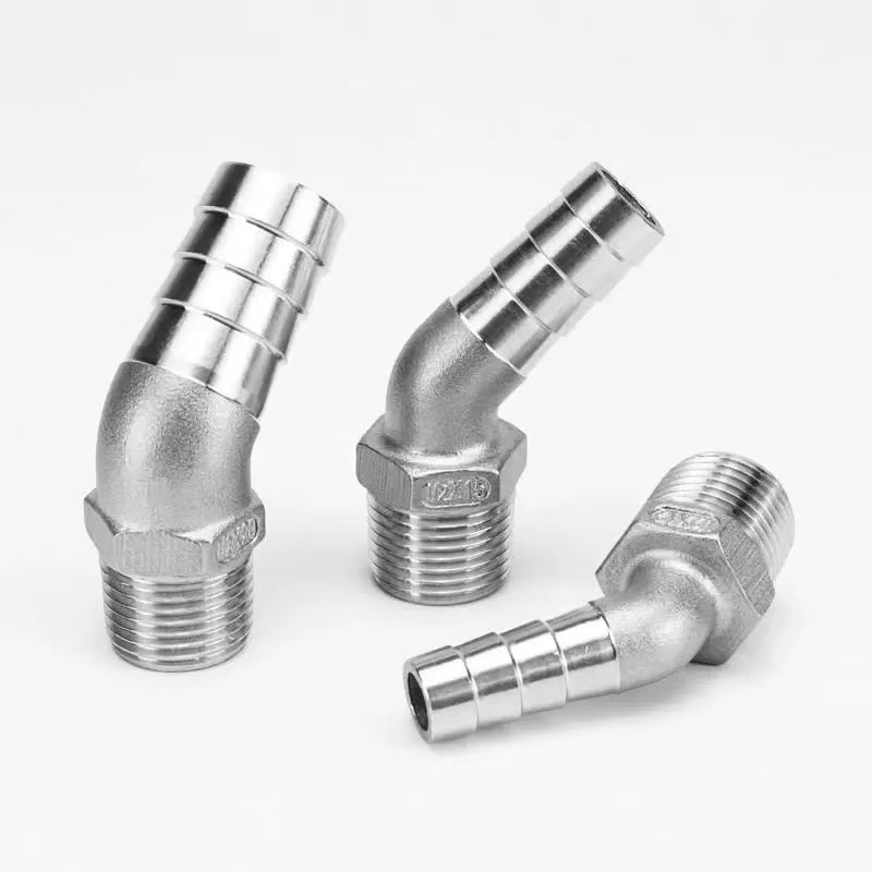 शेन्ची फैक्ट्री की 45-डिग्री हेक्सागोनल मेल थ्रेड एल्बो फिटिंग को विशेष रूप से उन अनुप्रयोगों के लिए इंजीनियर किया गया है, जिन्हें कठोर पाइपिंग से लचीली होज़ में संक्रमण करते समय एक चिकनी, 45-डिग्री दिशात्मक परिवर्तन की आवश्यकता होती है। इसका बाहरी धागा अंत संबंधित आंतरिक थ्रेडेड फिटिंग में कसकर कसता है, जिससे धातु पाइपिंग सिस्टम के भीतर एक रिसाव-प्रूफ सील सुनिश्चित होती है। कांटेदार नली का सिरा, एक बार लचीली नली में डाला जाता है, नली की भीतरी दीवार को मजबूती से पकड़ने के लिए उल्टे कोण वाले कांटों की एक श्रृंखला का उपयोग करता है; जब इसे होज़ क्लैंप से सुरक्षित किया जाता है, तो यह एक मजबूत, एंटी-स्लिप कनेक्शन बनाता है। 45-डिग्री कोणीय डिज़ाइन मानक 90-डिग्री कोहनी की तुलना में द्रव प्रवाह प्रतिरोध को कम करता है, जो इसे पाइपिंग सिस्टम के लिए आदर्श बनाता है जहां दबाव हानि को कम करना एक महत्वपूर्ण आवश्यकता है। इसके अतिरिक्त, फिटिंग के केंद्र में स्थित हेक्सागोनल बॉडी उपकरण तक आसान पहुंच की सुविधा प्रदान करती है और त्वरित, कुशल स्थापना को सक्षम बनाती है।